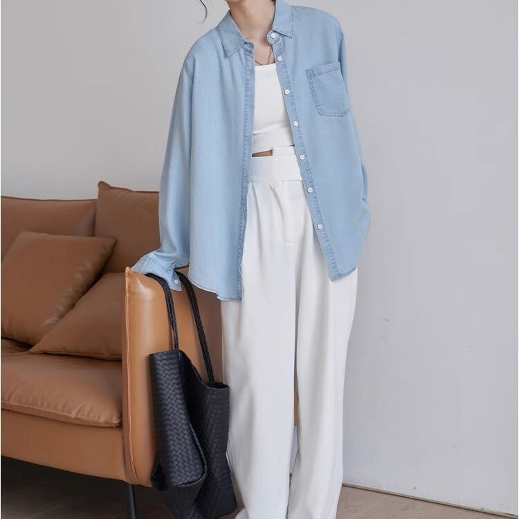 【サイズ】(cm) S 着丈:70 胸囲:104 肩幅:41 袖丈:59 M 着丈:71 胸囲:106 肩幅:42 袖丈:60 L 着丈:72 胸囲:108 肩幅:43 袖丈:61 ※採寸方法により1~3cmの誤差がある場合がございます 【カラー】 ライトデニムブルー 【素材】 レーゼル100% 【お届けについて】 こちらの商品は海外店舗より直接発送となる為、 ご入金から2週間〜3週間前後で発送致します。 ◼️注意事項 ・タイミングによっては 商品在庫切れにより 注文キャンセルとさせていただく恐れもございますので、 予めご了承くださいませ。 ・こちらは輸入品となります。 日本製とは検品基準が異なる為、新品未使用品でも ごくわずかな汚れや傷がある場合もございます。 重大な不良品として該当しない場合は返品対象外となります。 細かな点が気になる方には海外製品をオススメすることができませんので、ご理解いただいた上のご購入をお願い致します。 ・商品の色味は、お手持ちのデバイスの 画面によって実物と若干異なる場合がございます。 ・イメージ違いやサイズ等、お客様都合による交換、 返品、キャンセルは対応出来かねます。 ———————————— ご購入前にこちらをお読みください → https://ptbonheur.base.shop/ ————————————